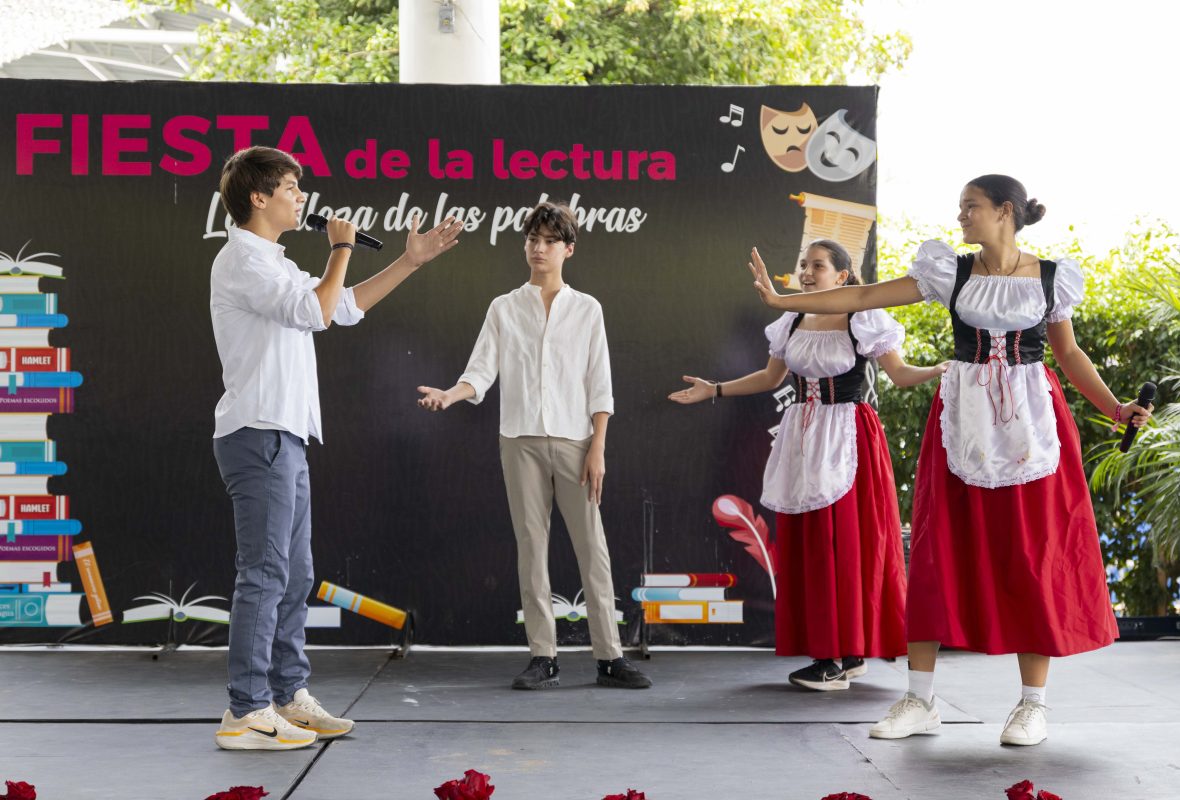 El pasado viernes se celebró en Secundaria una nueva Fiesta de la Lectura. Alumnos de 7º de EGB a 2º de Bachillerato fueron los protagonistas y prepararon diversas actividades en homenaje al género lírico, explorando sus formas, ritmos y posibilidades expresivas.
